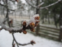 雪にも、寒さにも負けずにがんばれ桜~~!!