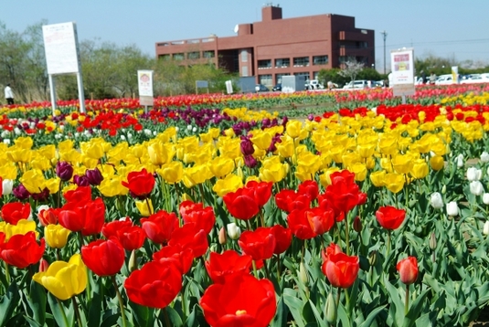 このチューリップは大勢のオーナーが秋に植えたもので16種類77,000本のチューリップが花の広場一面に広がります(*・∀・)ノ