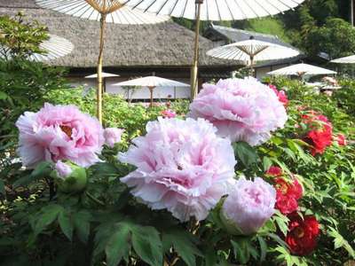 茂原牡丹園は、上総の民家の山里を背景に牡丹をあしらった素朴で自然な庭園を演出しています♪