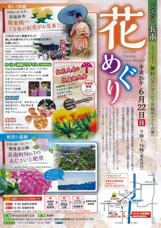 長福寿寺の紅花&野見金公園の紫陽花の鑑賞ツアー!