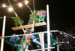 獅子舞が奉納されます。梯子の上で獅子と狐が見せる曲芸は見事です。