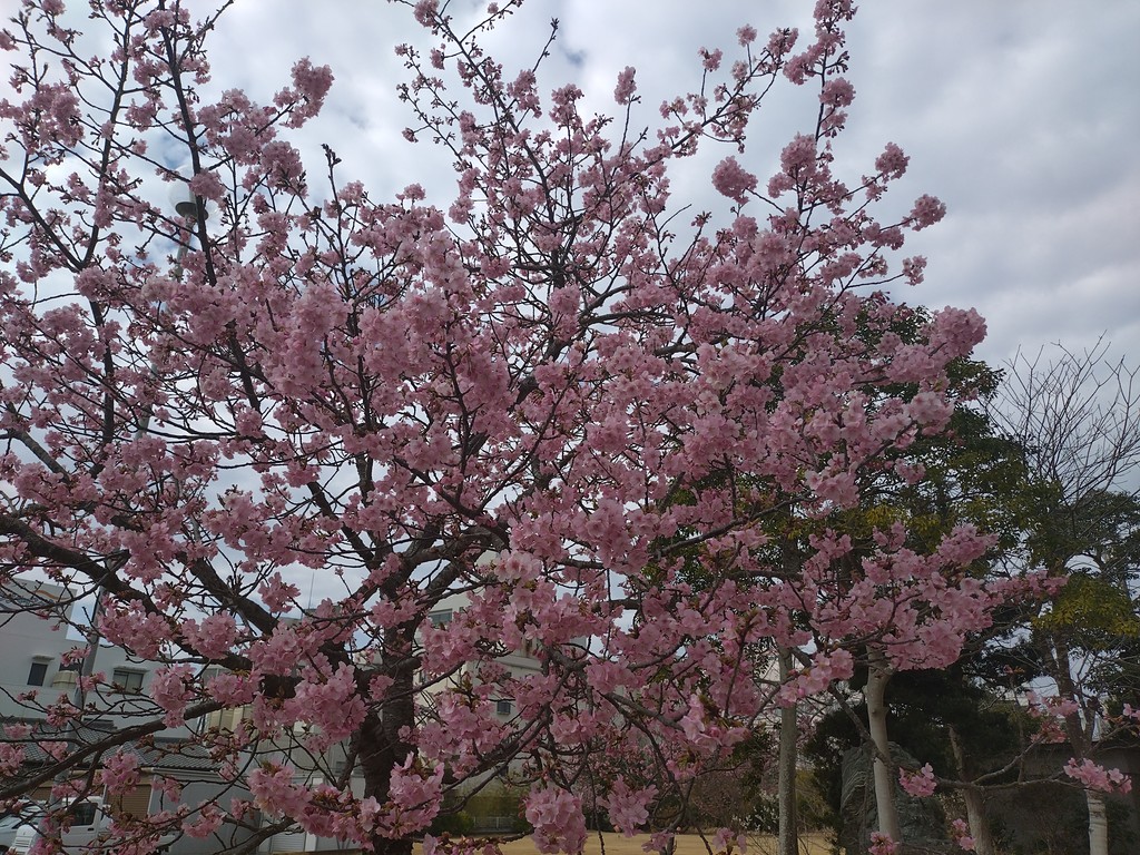 ここ数日の暖かさで、玄関前の桜はすっかり満開です。